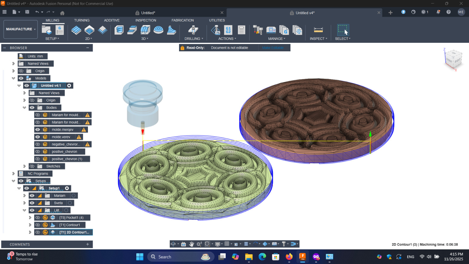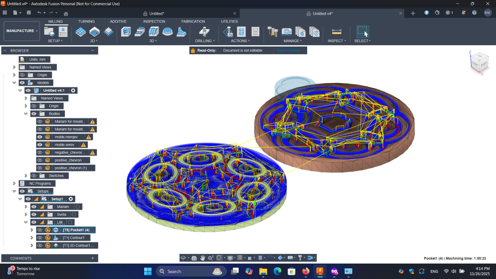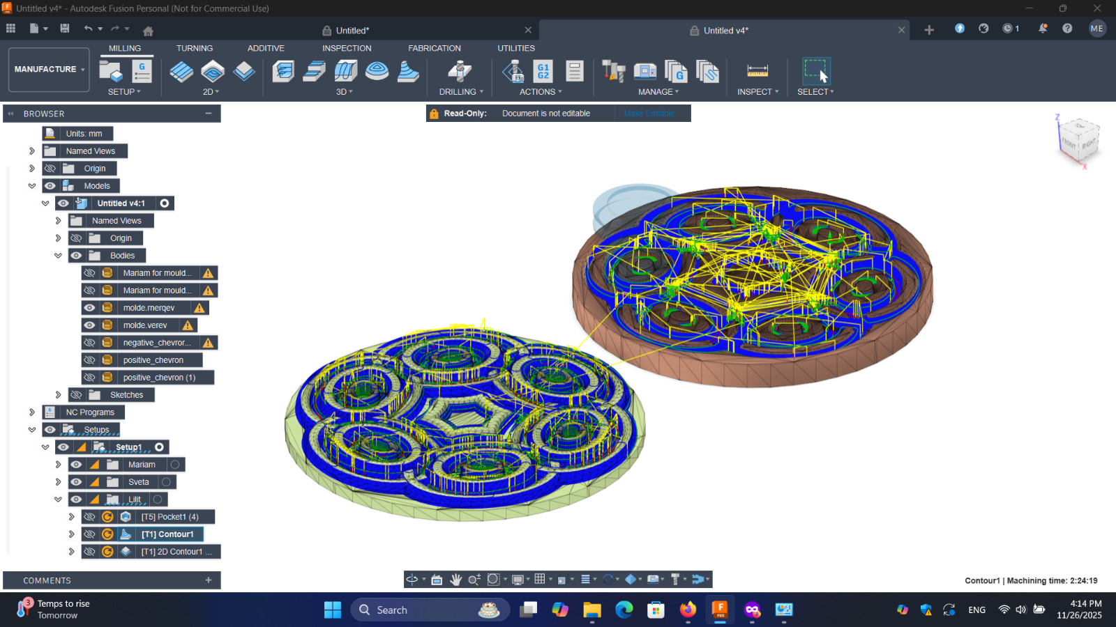This part takes more time because the machine goes line by line to follow every small curve. Fusion estimated almost 3 hours.