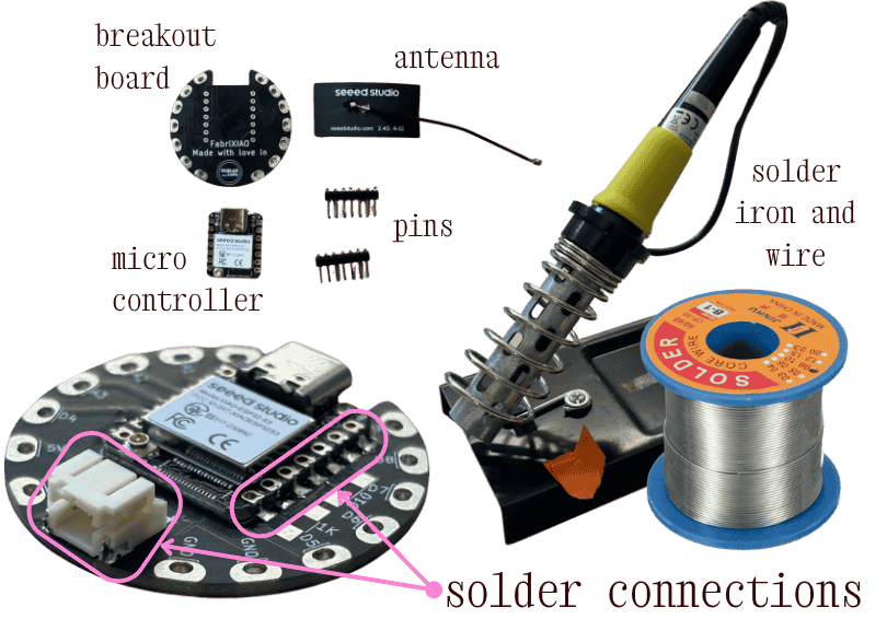 We are using the FabriXIAO breakout board with Seeed Studio XIAO ESP32-C3 microcontroller. We soldered the microcontroller to the breakout board.