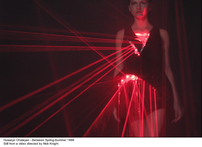 In 2008, Hussein Chalayan designed the dress with laser dyodes in collaboration with Swarovsky brand.