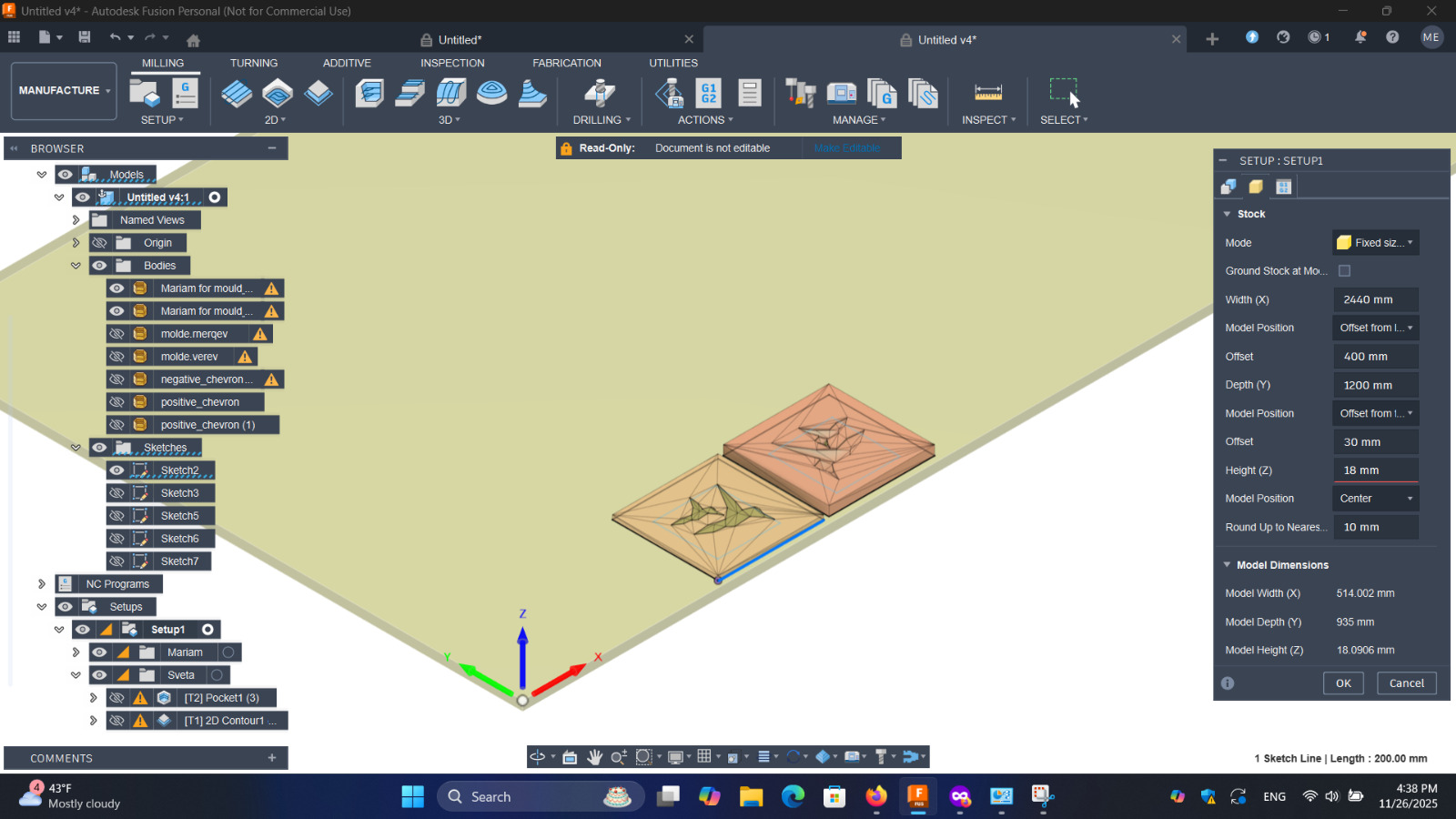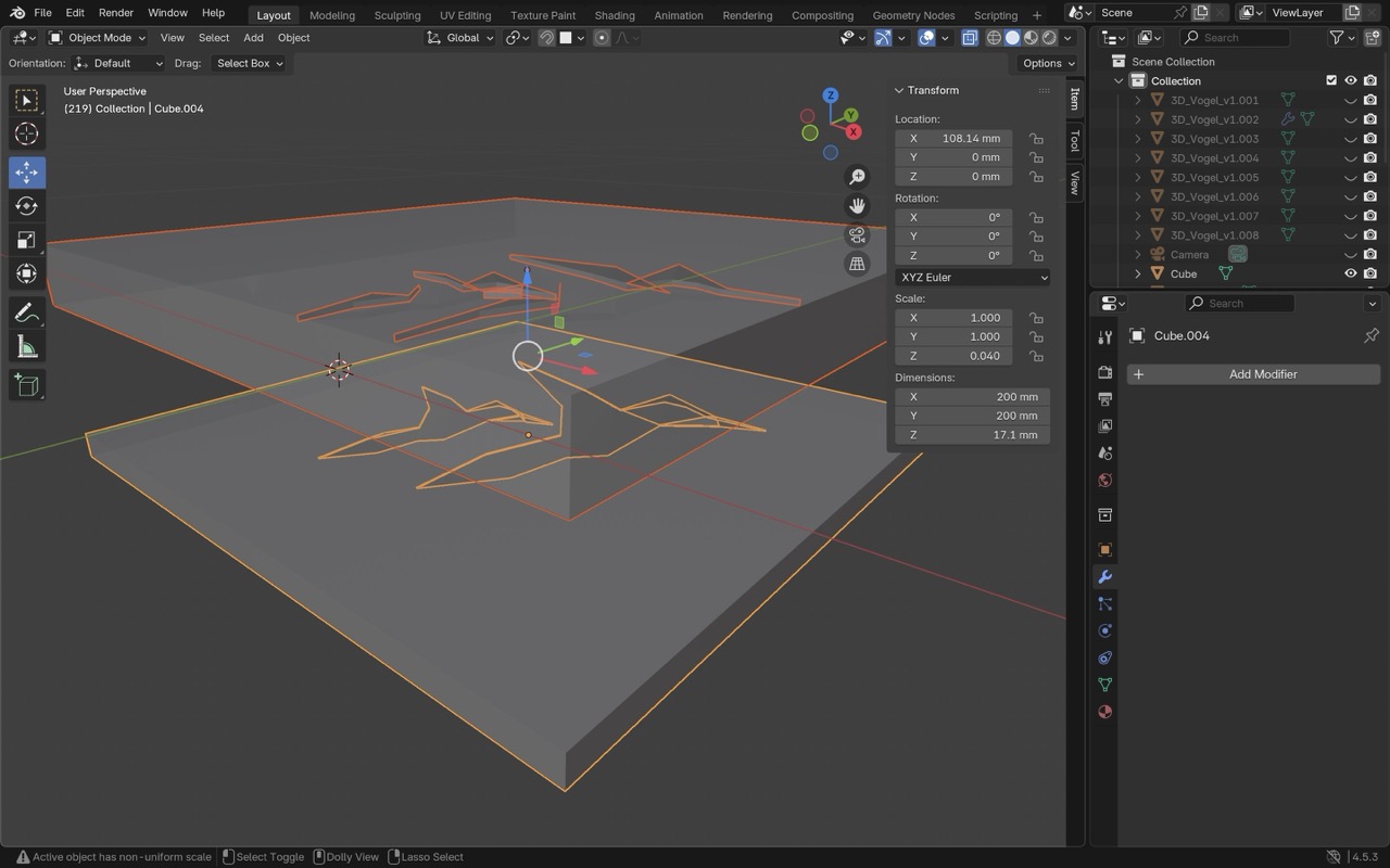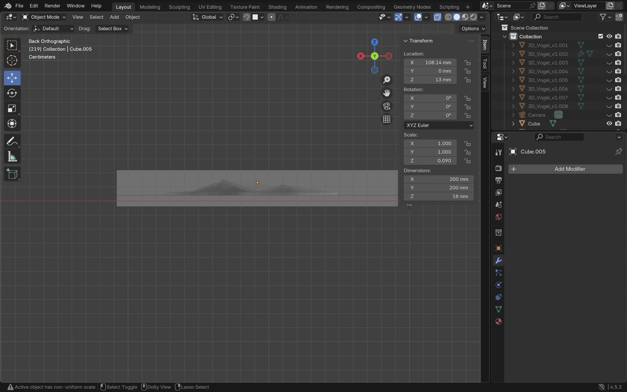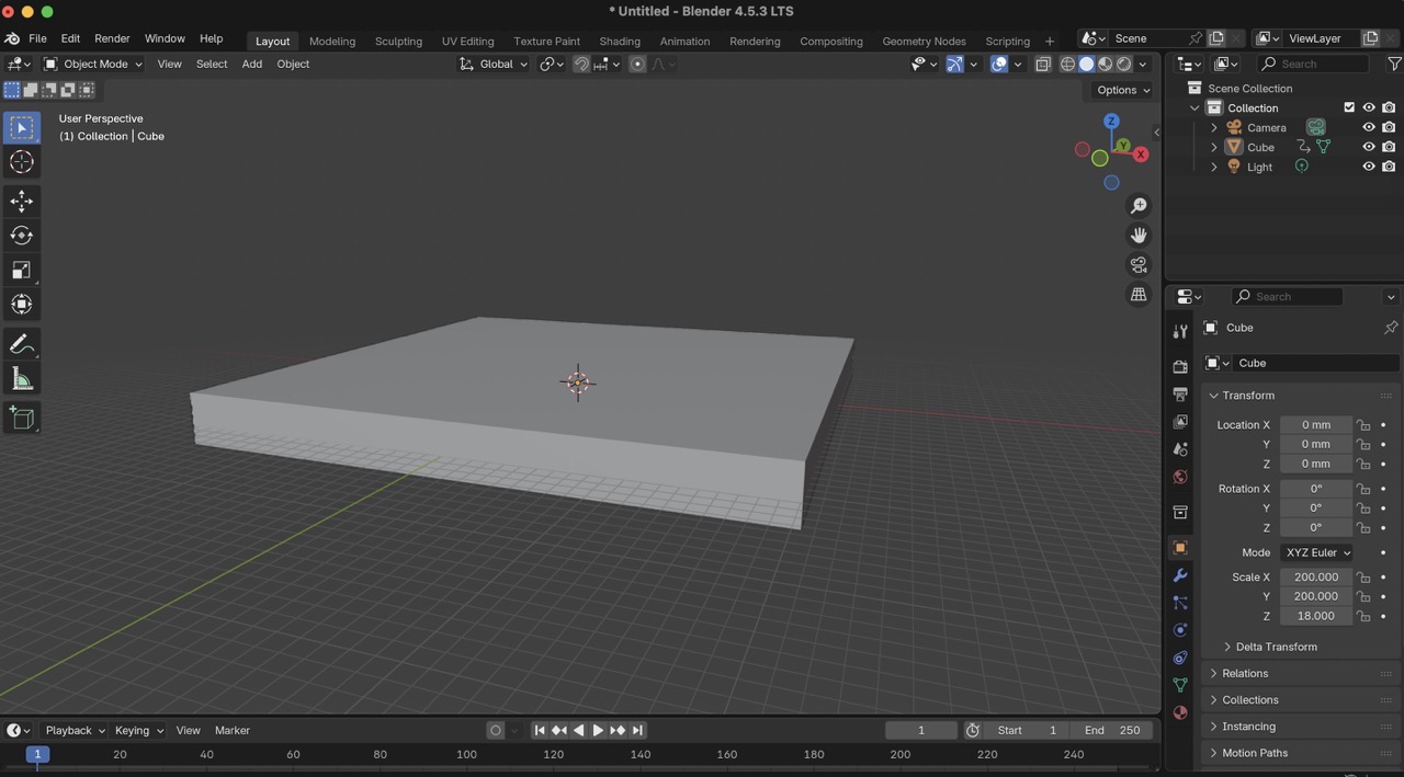 - Added a new cube: 200 × 200 × 18 mm (same as step 1)