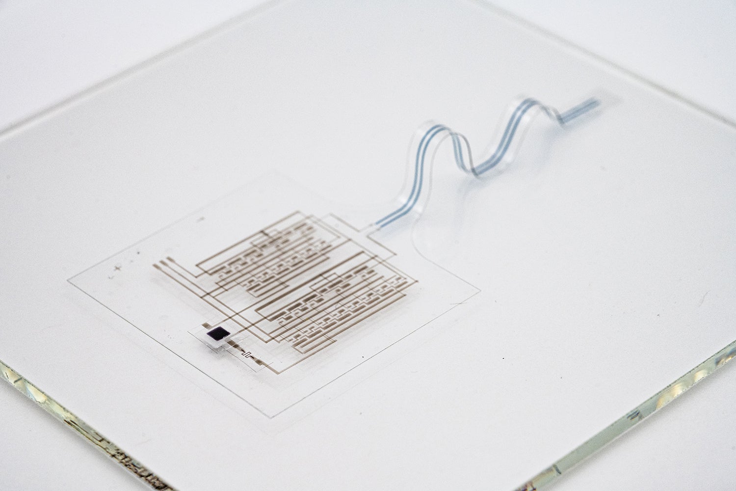 The e-skin is soft and stretchable, while also being able to mimic sense of touch and run efficiently at a low voltage. (Image credit: Jiancheng Lai and Weichen Wang of Bao Research Group at Stanford University)