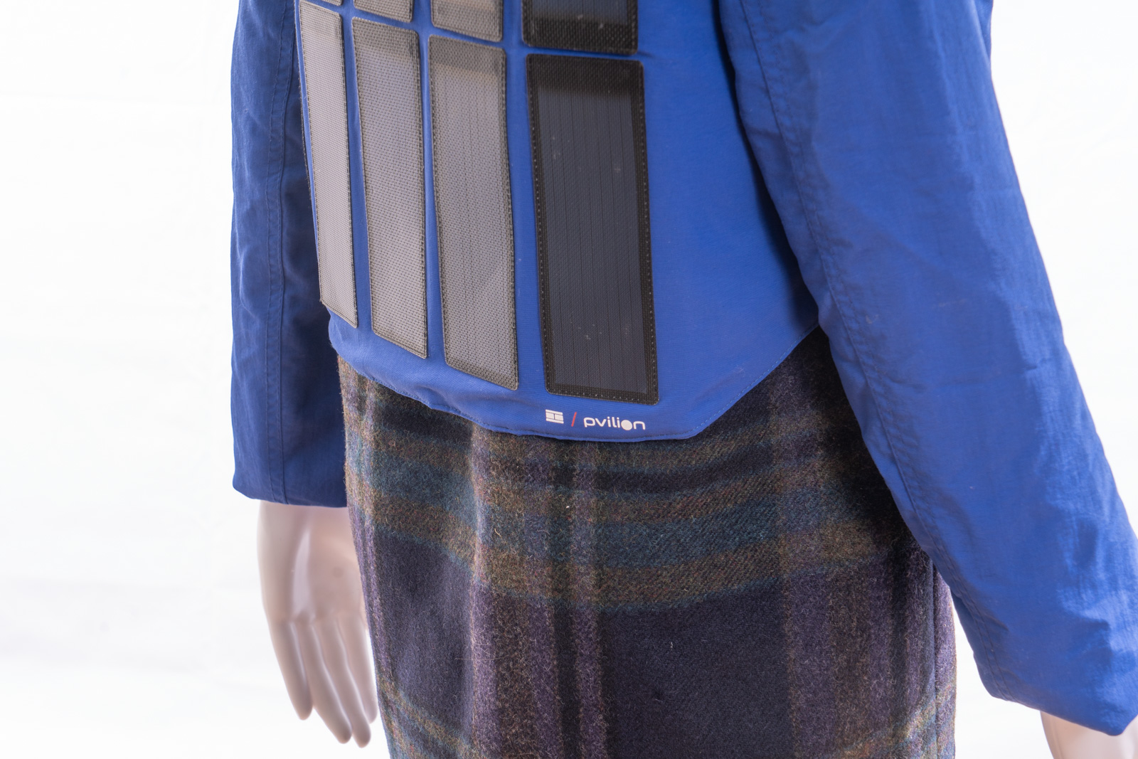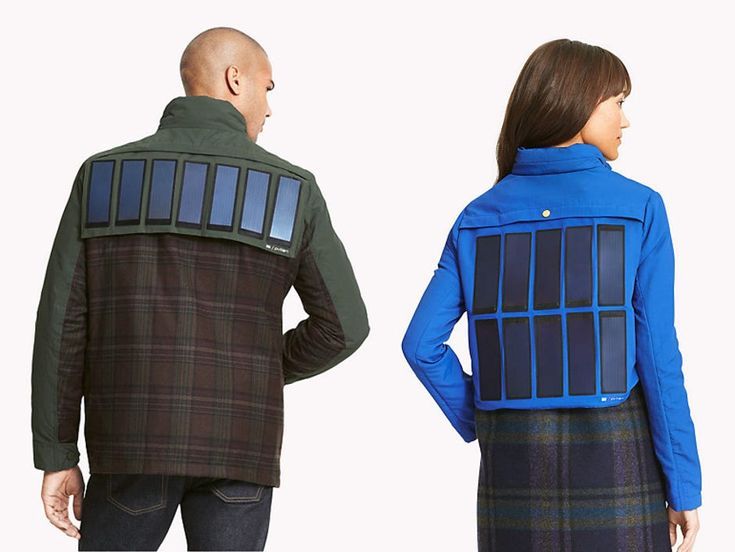 In 2014, Tommy Hilfiger partnered with solar tech company Pvilion to launch a limited-edition line of solar-powered jackets (one for men, one for women) that actually hit stores for the holiday season. The big idea was simple but clever: detachable, water-resistant flexible solar panels made from lightweight amorphous silicon technology. They snapped on and off the back of the jackets (about 7 panels for the men’s version, 10 for the women’s), and a discreet cable ran through the lining to a removable battery pack tucked in the front pocket. You could charge your phone or tablet just by wearing the jacket. The panels were super thin and flexible, so the coats still felt like regular outerwear – complete with a stylish tartan print. It sold out fast and was one of the first big mainstream fashion attempts at making solar clothing practical and desirable.