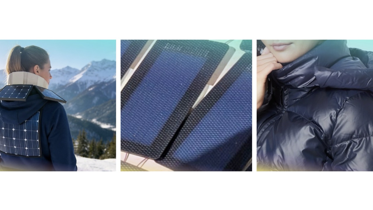 [Scene: panels / close-ups of solar panels on garment]