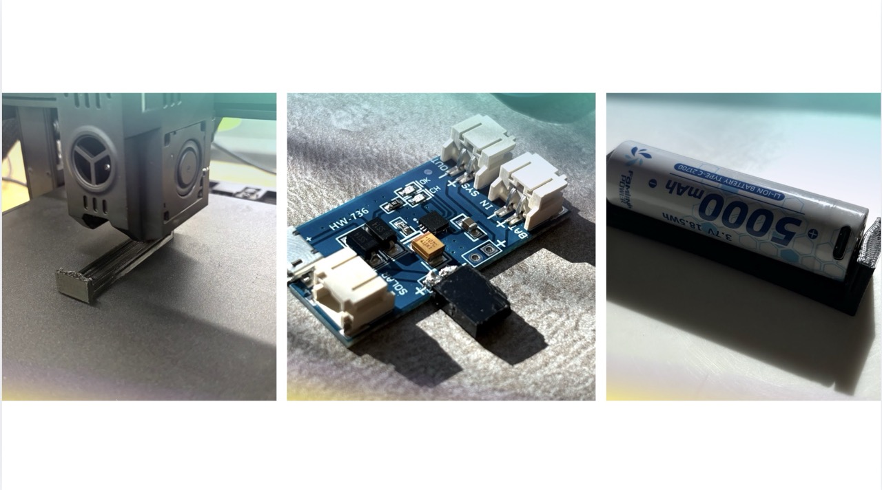 [Scene: 3D printing / battery holder]