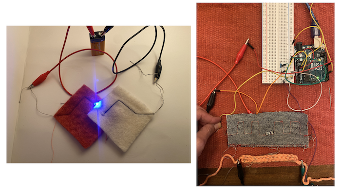 Wooo! E-textiles! E-textiles are my bread and butter. Well, electronics are, but I have to say I'm still learning how to better incorporate them into textiles. I'm such an e-textile enthusiast. I'm fascinated by work in this realm. There's so much to investigate creatively, technically, scientifically.