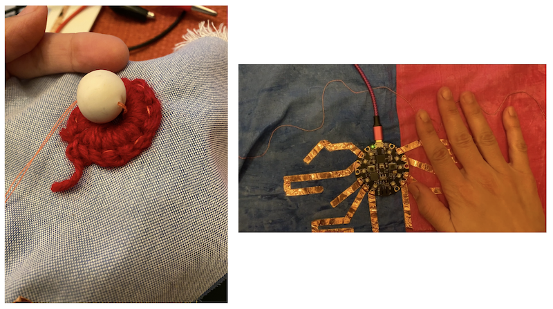 ANYWAY I was trying my best to program my Adafruit Circuit Playground to heat up the conductive thread ONLY when the capactive sensors/pads on the microcontroller were touched, but I couldn't figure out the code. At least with the time I have, I was already behind completing this week's work. BUT when I have more time and my mind is less clouded I'll tackle it again.