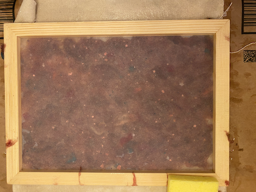 - Sponge out the excess water on the mesh of the deckle and peel off deckle frame.