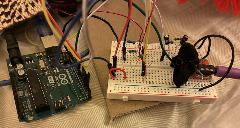 At this point (yes, the end of week 11) I decided to use an Arduino and wire up a digital theremin that still incorporates the spirit of analog. Otherwise, despite my numerous trials that were either not or somewhat successful, no sound would produce like entirely intended. At least not now. Much more time to troubleshoot is needed. Time I no longer have.