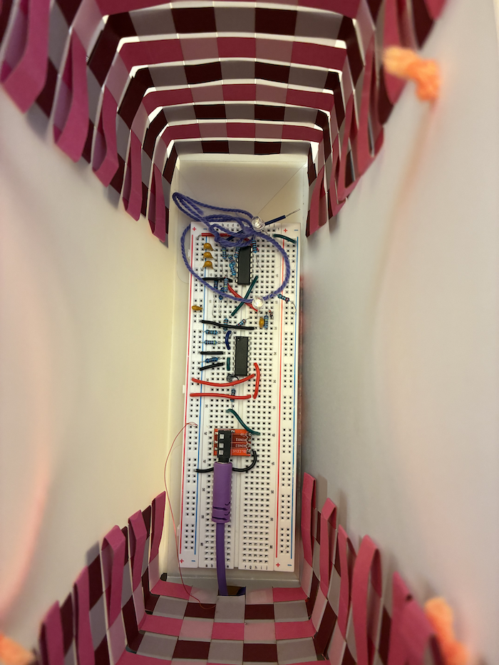 I lasercut my circuit (breadboard) enclosure from vellum paper and colored cardstock paper. I got some of my inspiration from grocery totes mostly basket woven in Mexico. I didn't have all this time to perfect it but the file is pretty well modified at this point that if you decide to weave it for yourself, you'll have little to no problems. I also intended to assemble it without glue. Alas... inevitable at this point.