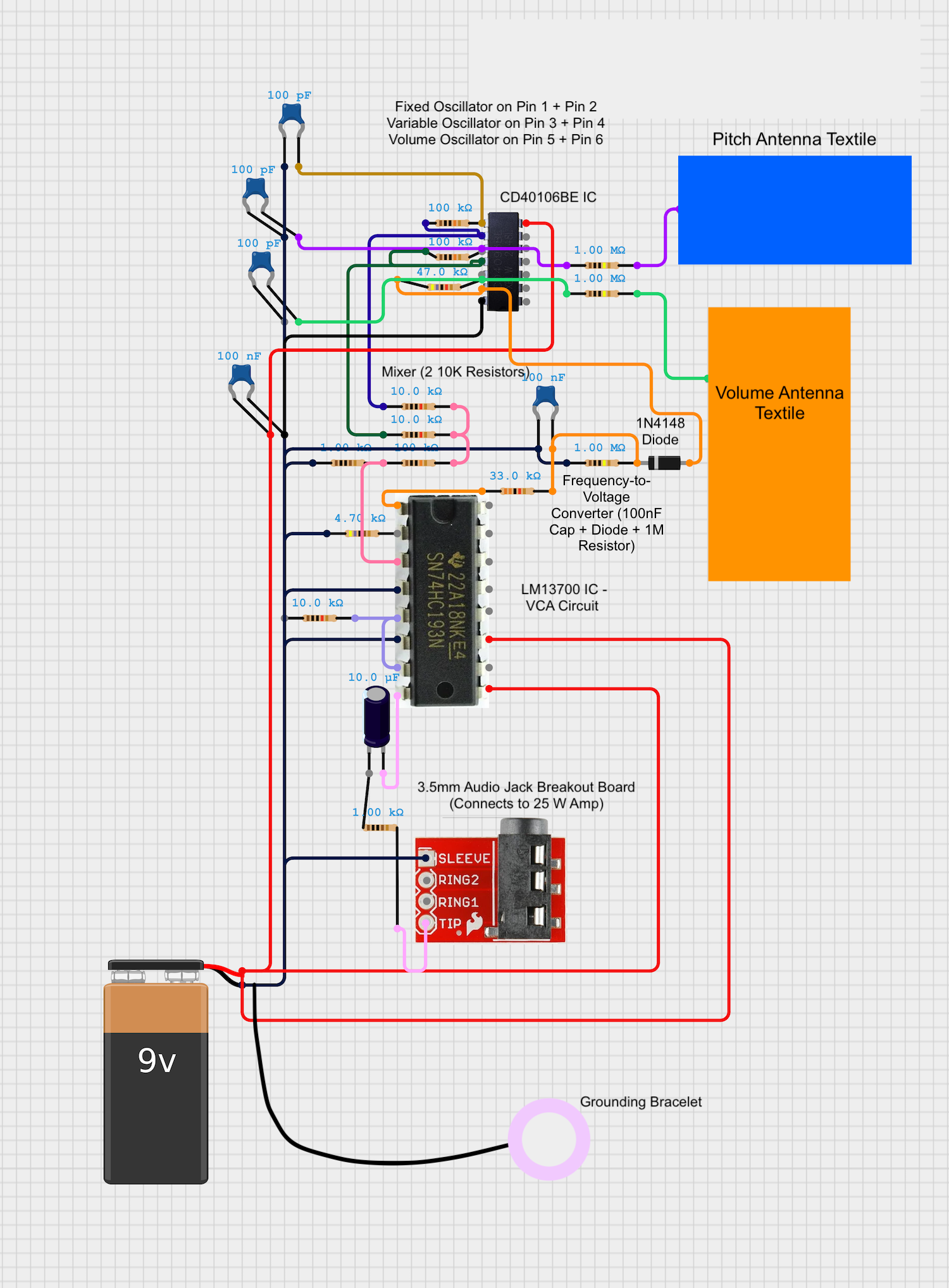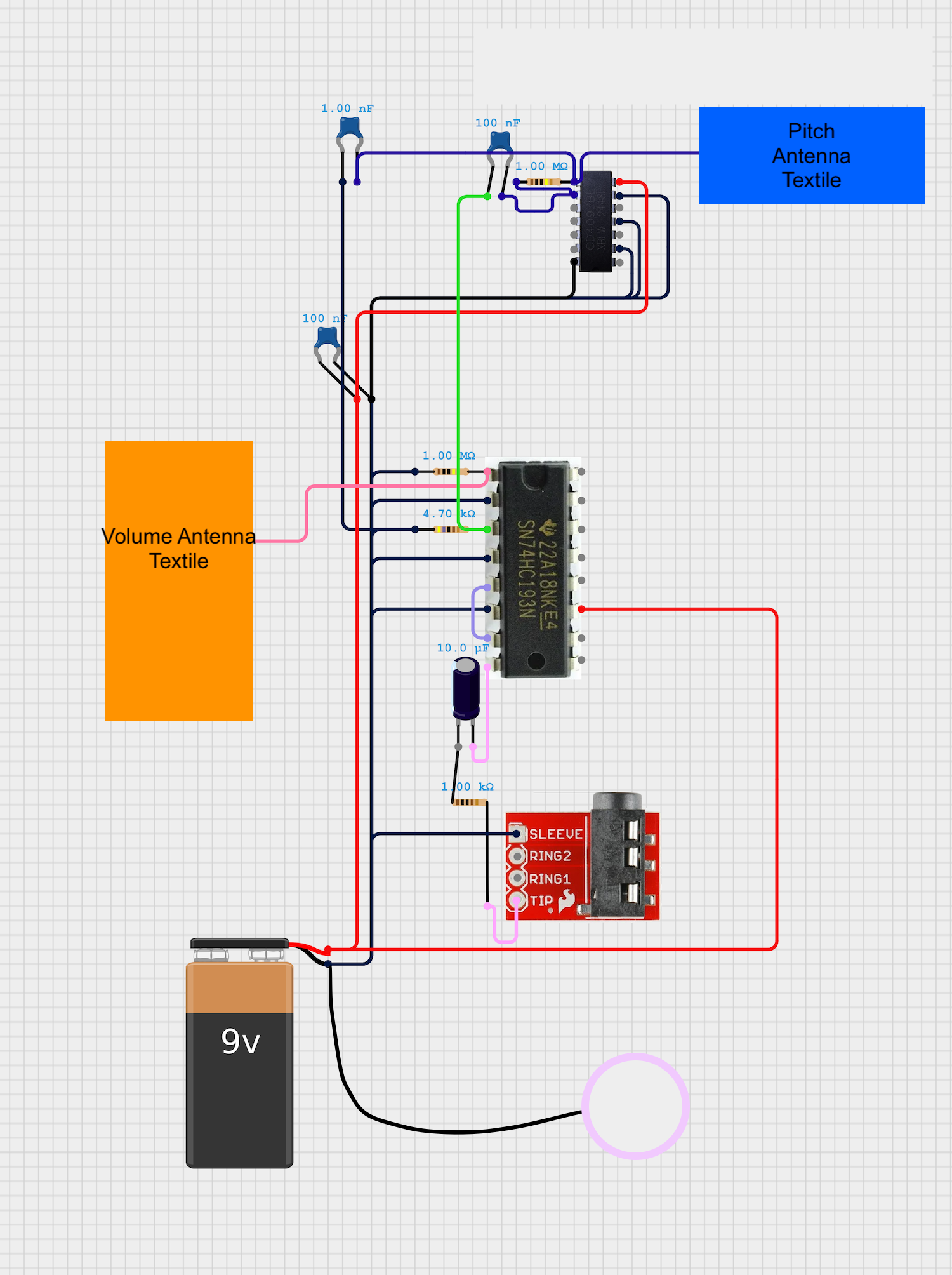 Integration - Prepping the Antennas; Take 3 - Theremin Circuit Diagrams¶