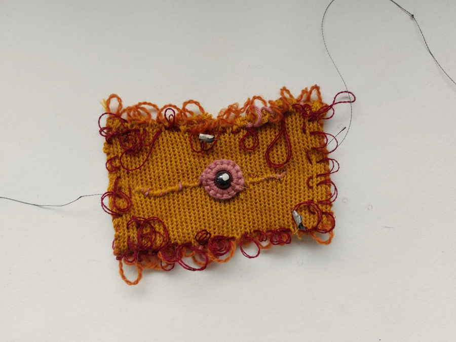 Once the prototype was functional, leftover threads from the Kniterate machine were added to create a more textured and expressive surface.