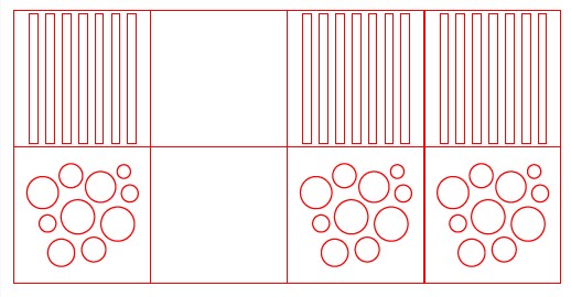 - three copies of a square with repeated rectangles,