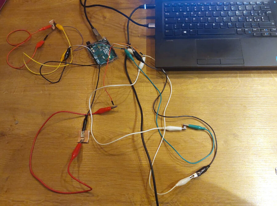 When I started applying the kinesio tape patches to my body, I realized that the wires were too long and that the intersections could cause false positives if each individual connection was not insulated, as confirmed by the recorded video.