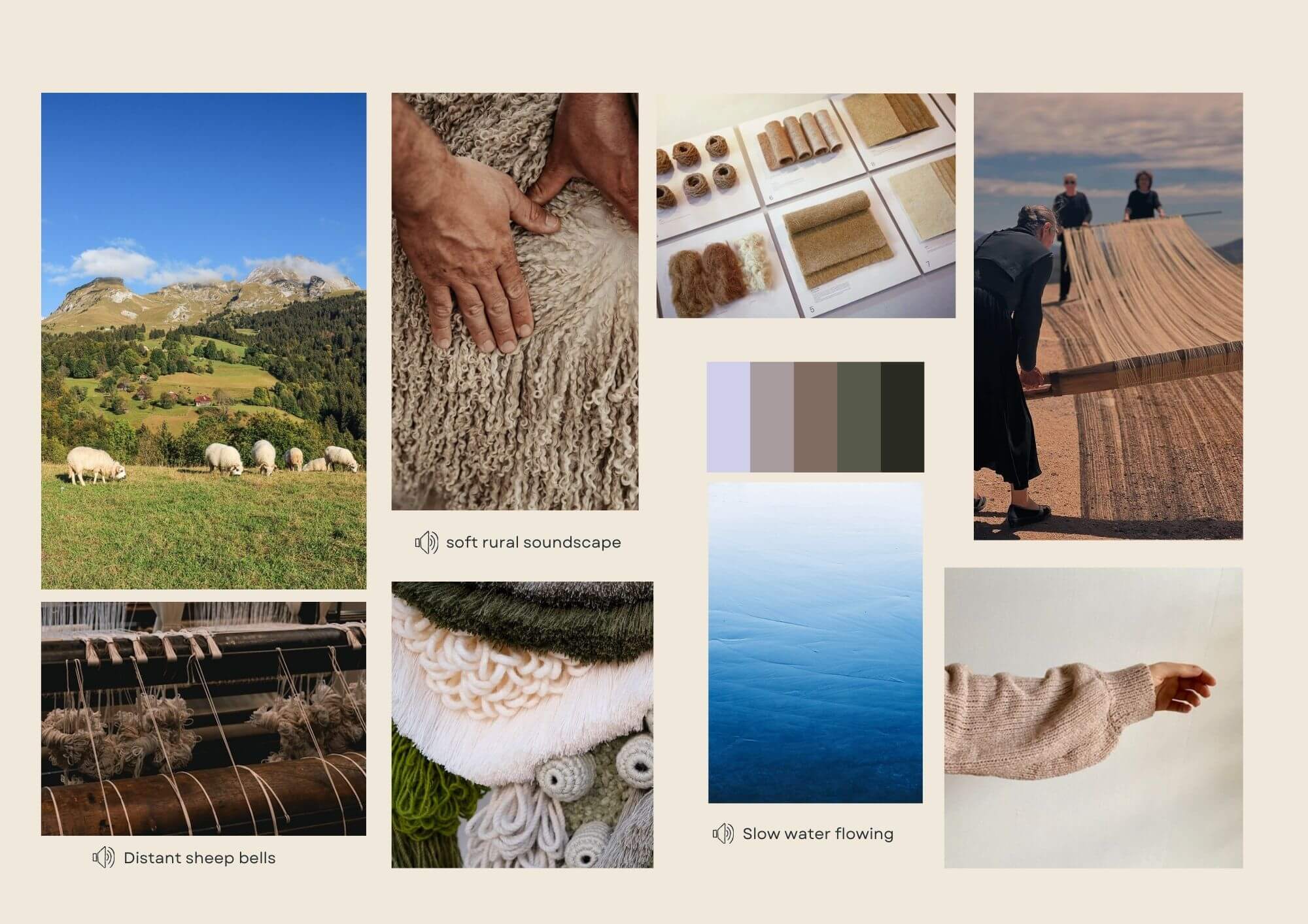 Sounds is an important source of inspiration: growing up on an island, I was surrounded by the rhythm of the sea and the bells of animals during countryside visits or traditional Sardinian celebrations. Living in cities later made me acutely aware of noise pollution. In this project, I aim to bring sound back to a calm, far from the urban chaos.