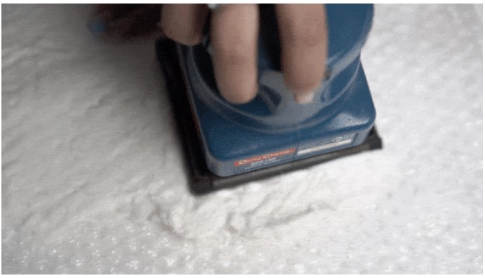 - Javin Gohel in her final project explored wet felting through the use of a sanding machine, to activate wool fibers with water and movement.