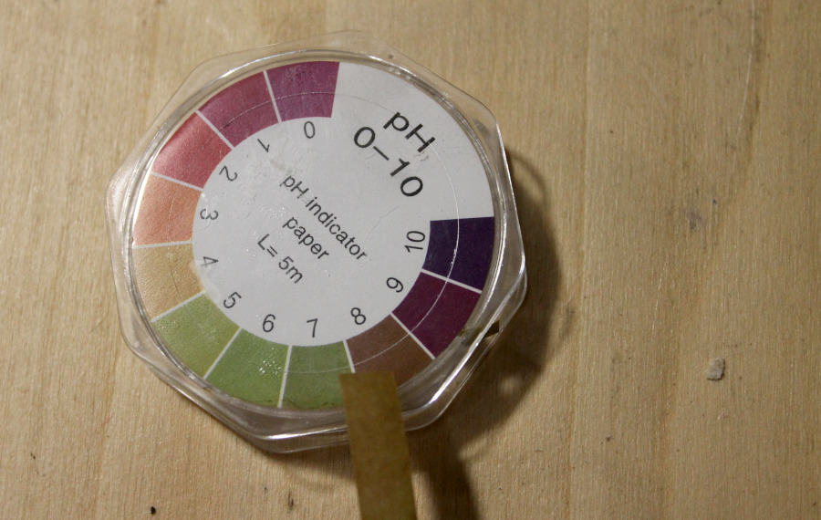 Material: unwashed wool, water, stainless steel bain-marie, thermometer, pH strips, gloves (optional).