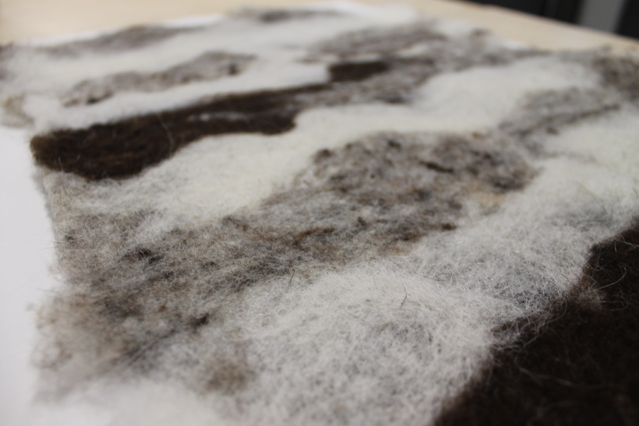 As a second test, I added unwashed wool on top of the carded layer but the wool was not easy to interlock.