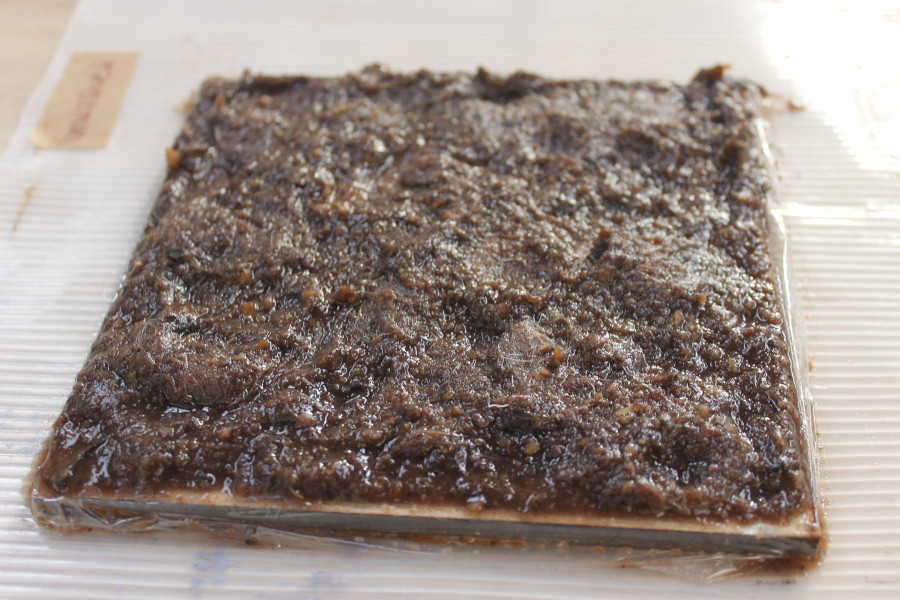 The biocomposite is still drying and should require up to 7 days. Wool was embedded in matrix for reinforcement.