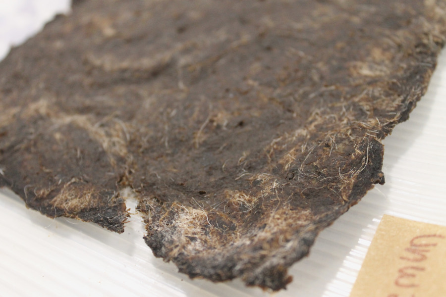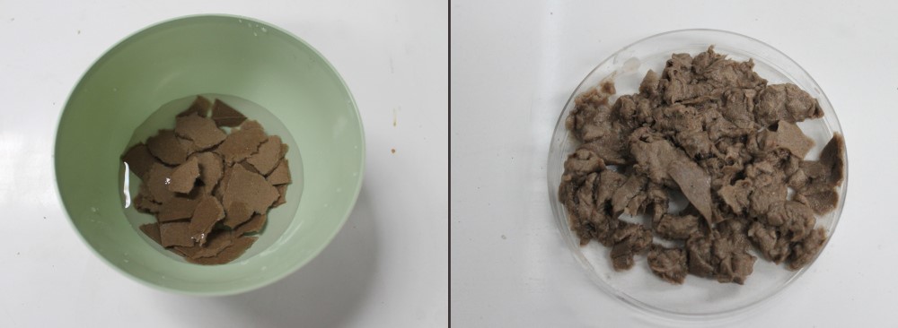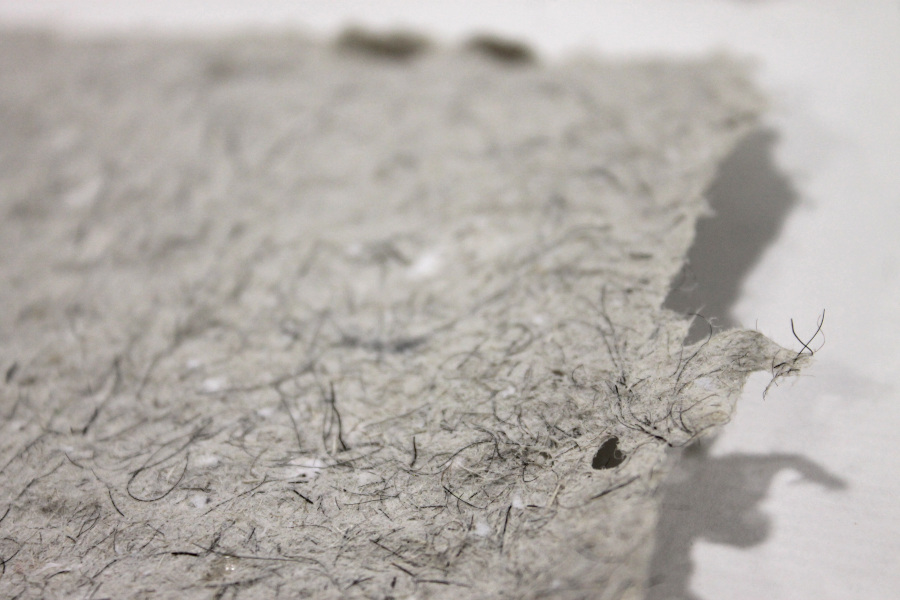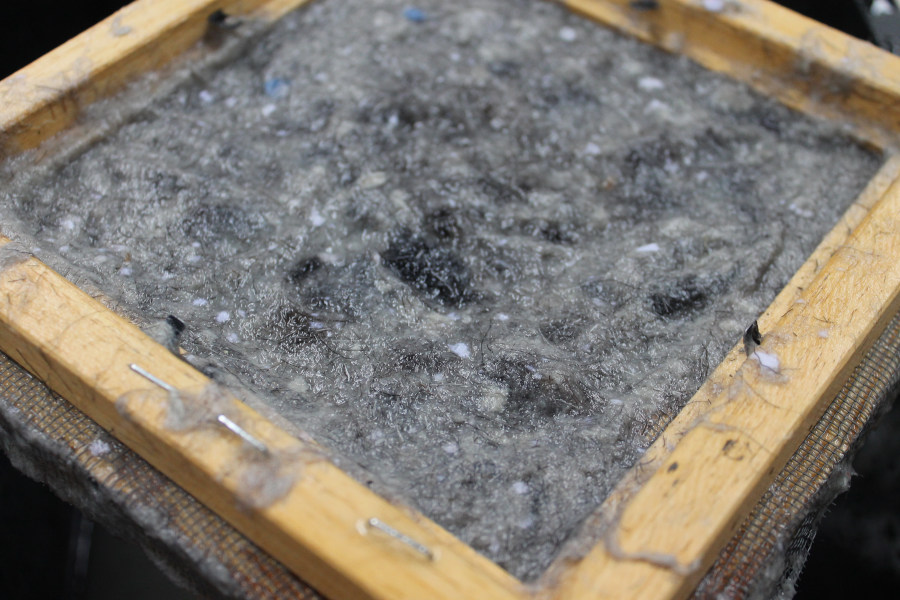 The test was not successful. During drying, the wool fibers separated from the paper pulp instead of bonding with it. As a result, the structure lost cohesion and broke once fully dried.