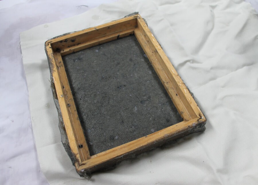 Couching and pressing: transfer the wet sheet onto a cotton cloth and gently press with a sponge to remove excess water.