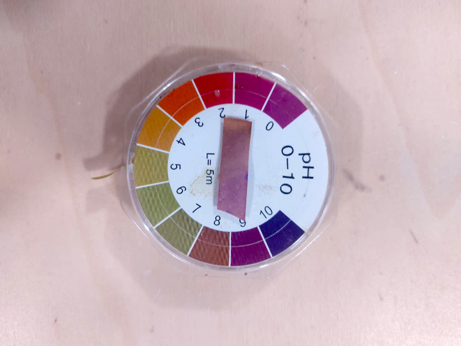 Material: unwashed wool, water, stainless steel bain-marie, thermometer, pH strips, gloves (optional).