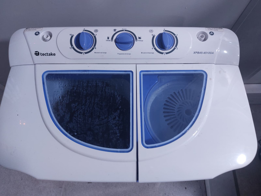 One morning Pauline found a suitable solution: a compact Tecktake washing machine that requires manual water management and I decided to test it.