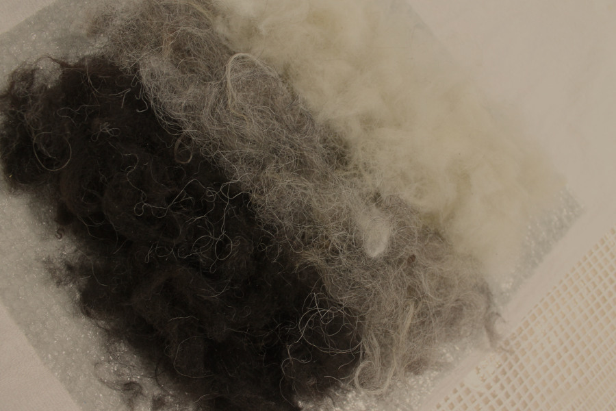 As a second test, I added unwashed wool on top of the carded layer but the wool was not easy to interlock.