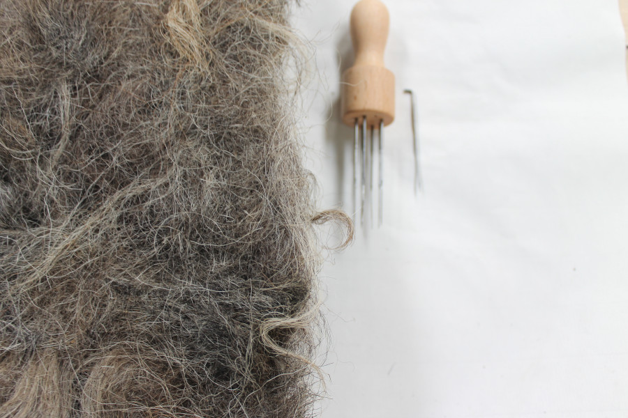 Keep fibers clean to minimize broken needles; unwashed wool is forbidden in Lainamac school and generally not recommended.