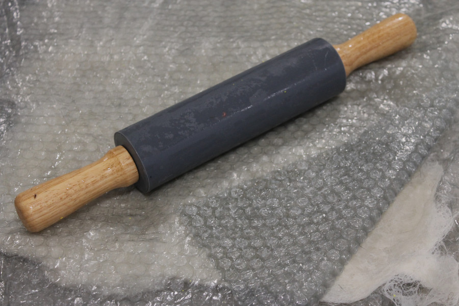 - Cover the layers with bubble wrap (bubbles facing the wool) and roll them around a cardboard tube, applying pressure.