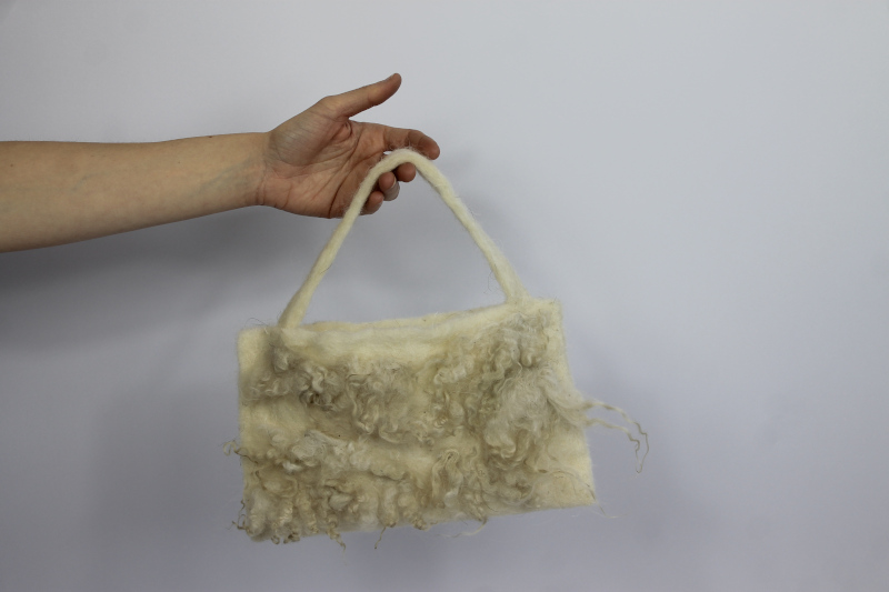 - Process: manual wet felting using rolling motion with a kitchen rolling pin to apply pressure and compact fibers