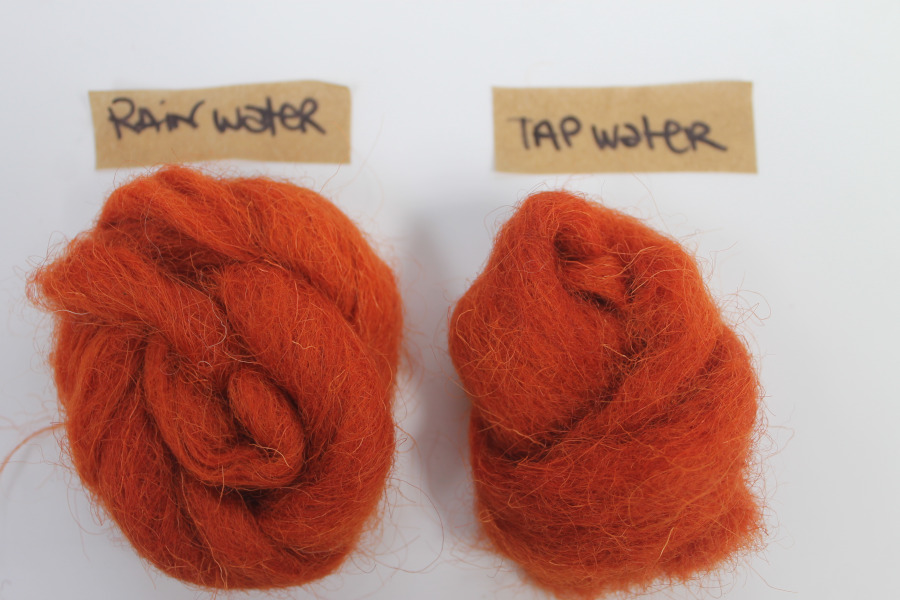 Water pH impact in dyeing: comparing rainwater (pH:5) and tap water (pH:8) to evaluate rainwater as a local, low-treatment resource.