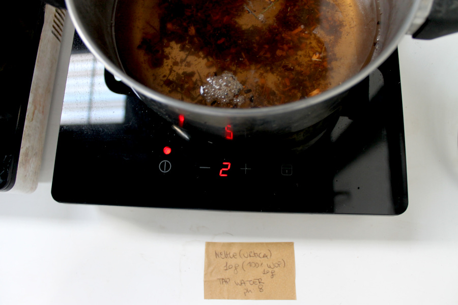 | Nettle (Urtica dioica) | Decoction | Yes | Pale green | 100% | Soft grey | 10g |