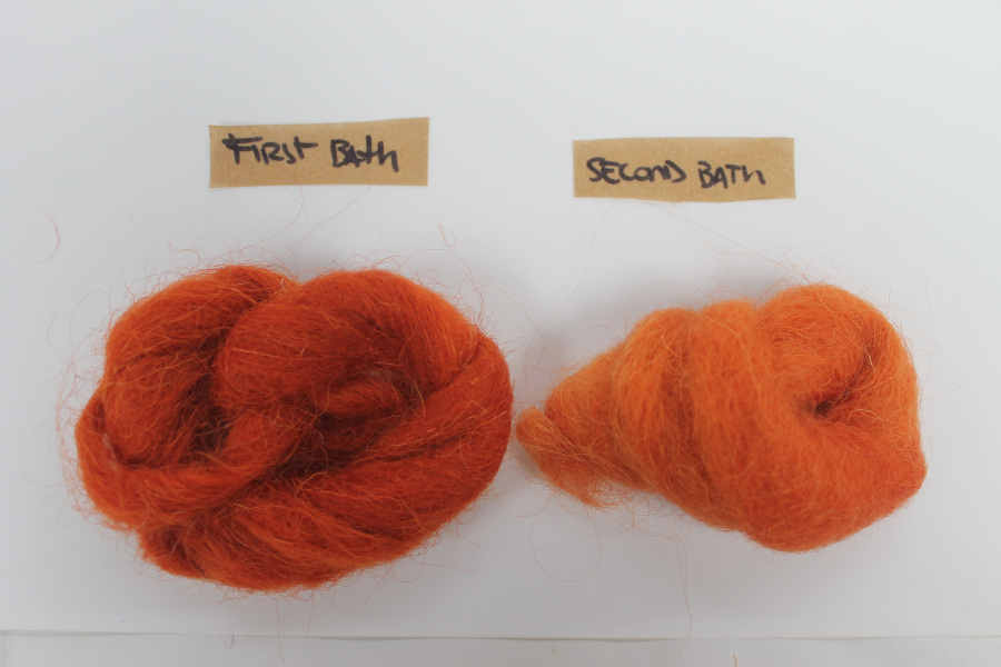 MORDANTS (WOOL): 20% WOF of potassium alum + 8% WOF cream tartar.