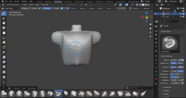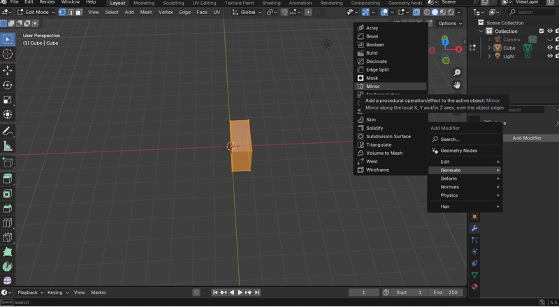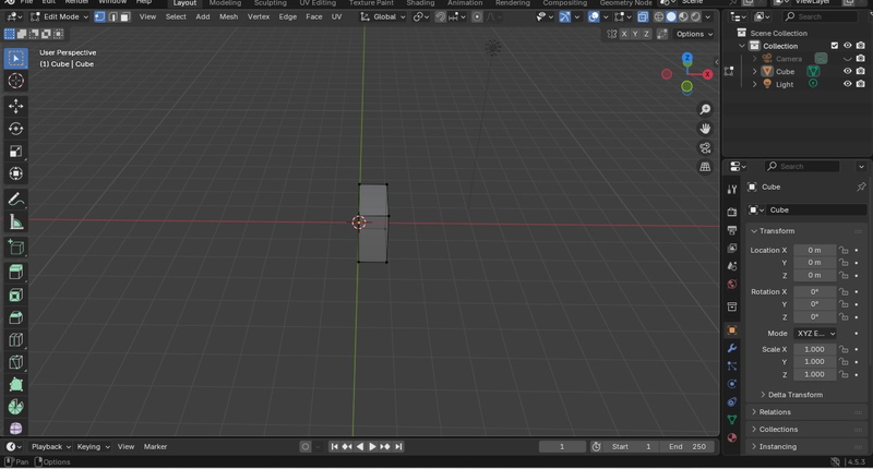I chose cube to make my torso and I made sure I was in 'edit mode' and using the 'select tool'. I cut my cube into half using CTR+R key which I got the vertical loop, left click to place, the esc key. I pressed the XF keys to delete the unwanted part.