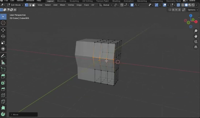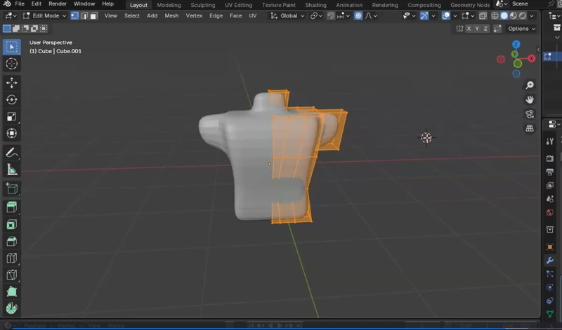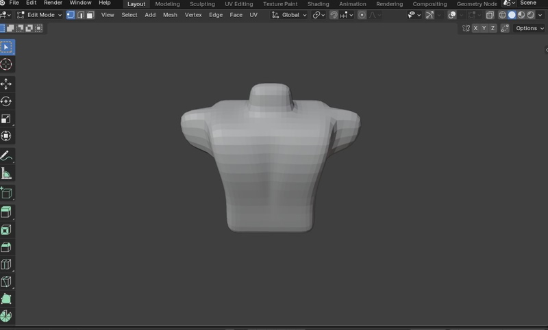 The next part was to do two horizontal and vertical loop cuts. To make shapes I used G/X/Y/Z to make curves, create head and hands. Doing all these you must be in X-ray mode for it to replicate on the other side.