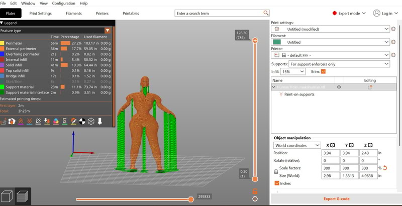 I followed by adjusting the infill, enforce supports and brim then exported it as a G-code.