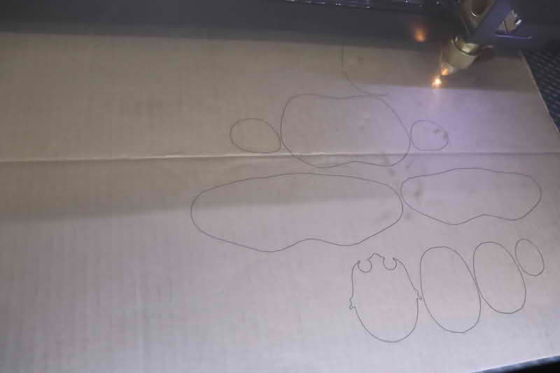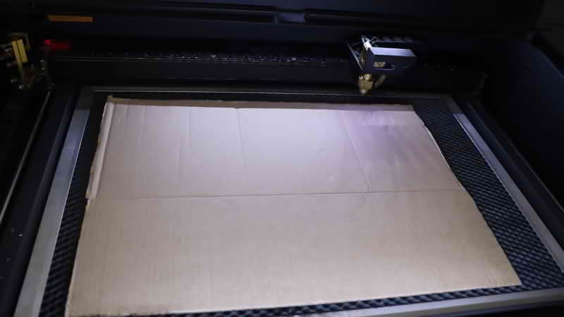 I placed my cardboard in the laser cutter ready to cut. the cardboard used was for packaging so I was a little skeptical if it would work.