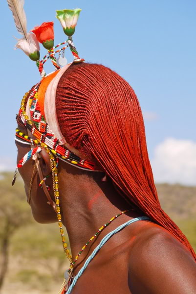 🌿 Red ochre, a mineral (eng'are in Maa): From iron-rich soil, often mixed with animal fat or clarified butter to make it sticky. Applied on body and hair.
