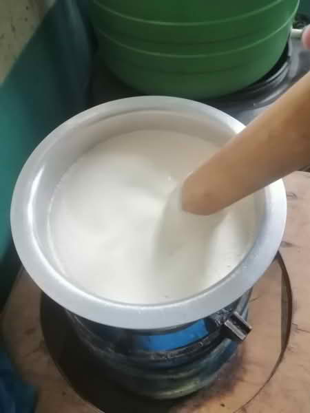 I had to first prepare soy milk from soy bean by soaking 100g of the beans overnight. I then blended in 2 litre water cooked it at 90 degree celcius for 30 minutes and seived.