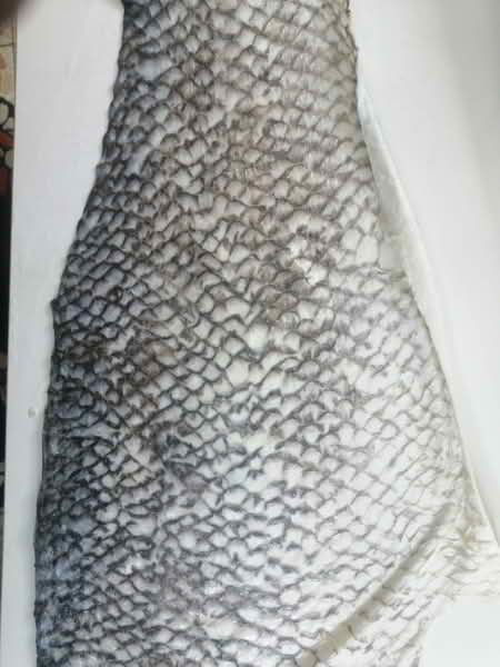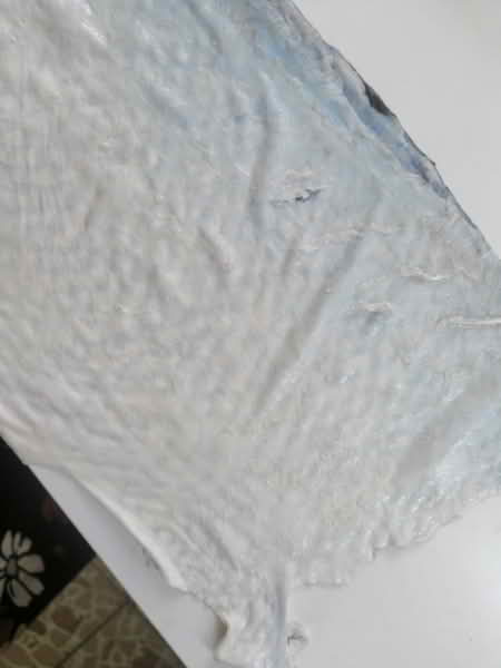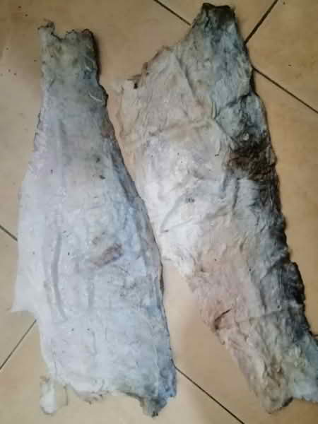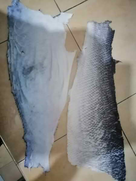 I ended up going to a market where they sell fish skin majorly nile perch and I was very impressed with the varieties of sizes and quality of the fish skins they had. I wanted a bigger to medium sized skin and I bought two both weighing 45 grams.
