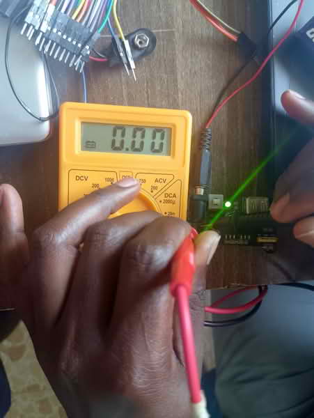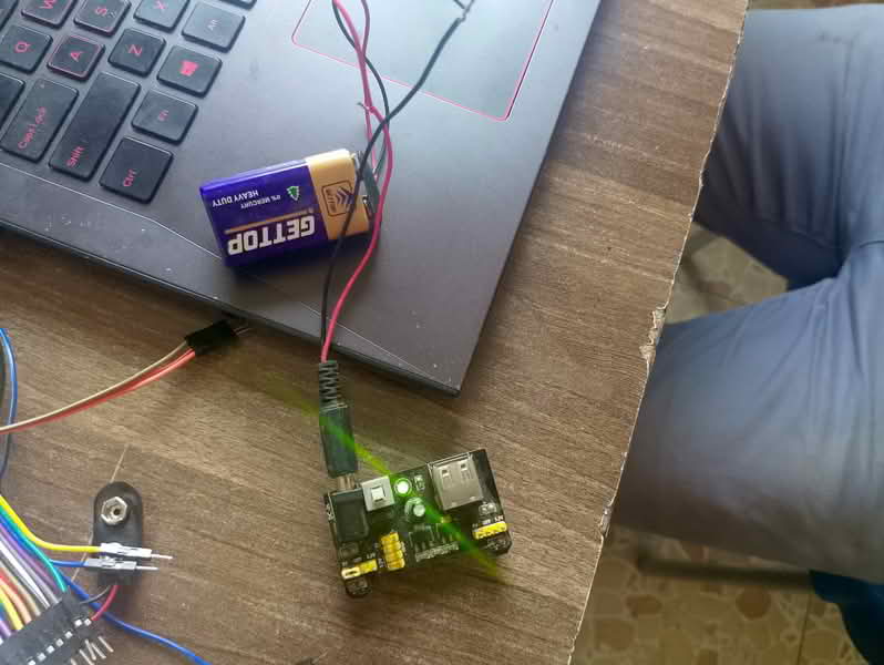 Using 9v battery as our power source but the power supply board failed us to we had to use from the main socket.
