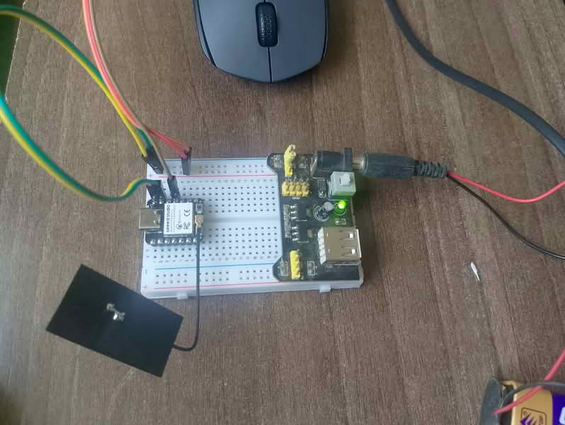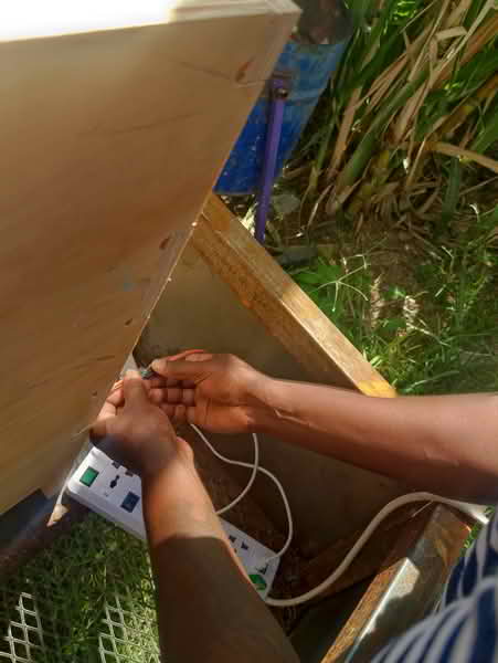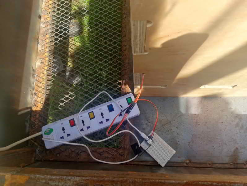 We mounted the breadboard together with ESP32 and the sensor on the box and powered it using electricity through an extensio cable.