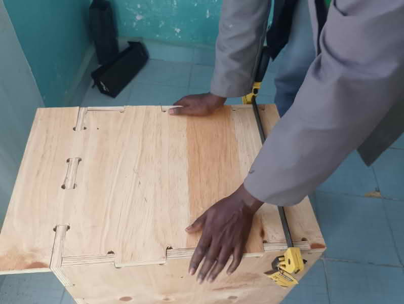 Kimani helped in designing the wooden box using fusion 360 and we cut it using CNC machine and assembed it together.