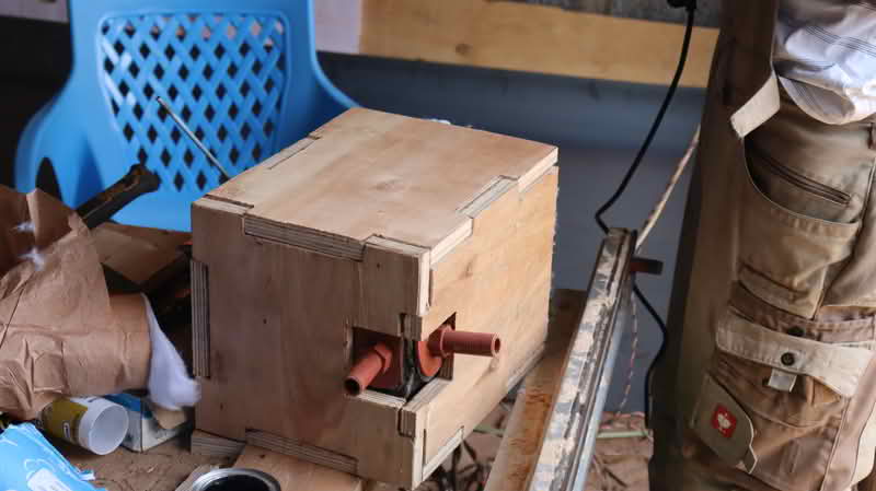 Wood inserts were assembled and the cone that was to hold the materials put in. this is where the steam will go to.