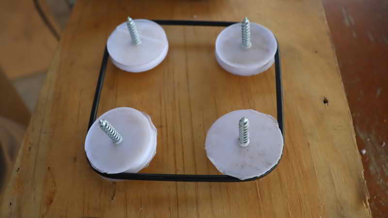 Cut some plywood into square shape and made holes for the hooks to be scewed in. I then assembled the pulley into the hooks.