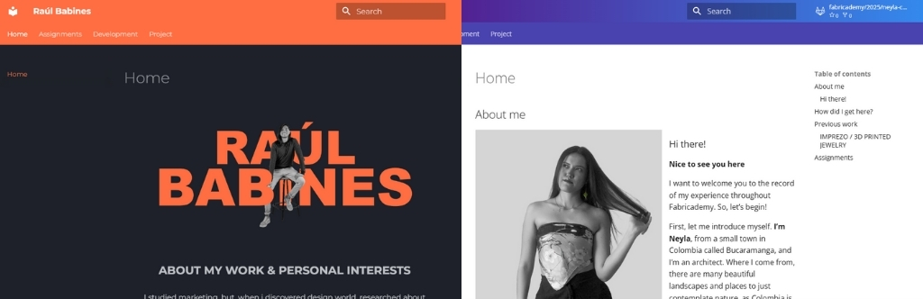 Browsing through the pages of participants in recent editions of this program, the profiles that caught my attention the most were those that had consistency and sequence in the design of their pages and contrasting styles, such as Raúl Babines, who has two contrasting colors, and I also liked that he had images for the title at the beginning of each task. One thing that really caught my attention on other pages such as Neyla Coronel was that they could put their own logo and a blurred header, so I decided that's what I wanted for my page.