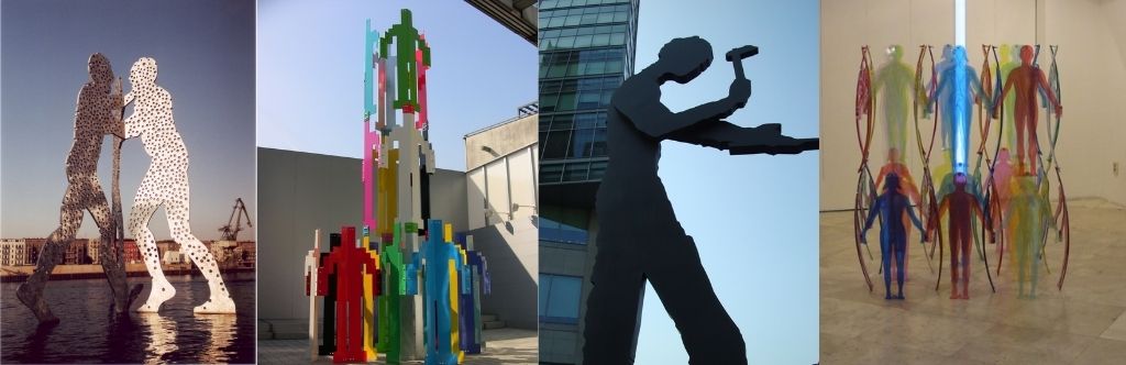 Jonathan Borofsky's work serves as a reference for understanding the human body as an abstract, digitizable, and repeatable form. His human figures, reduced to simple silhouettes, eliminate individual identity and transform the body into a modular unit that can be easily translated into geometry. The body acts as a structural element that activates space and can be captured, edited, scaled, and replicated.