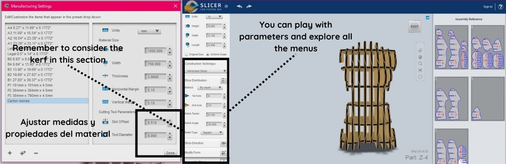 Once I have my STL file, I go to Slicer for Fusion, which is a digital manufacturing tool that allows you to transform three-dimensional models into 2D sectioning systems ready to be manufactured using laser cutting, CNC, or manual assembly. From a 3D model, the software automatically generates flat pieces that, once cut and assembled, reconstruct the original volume.