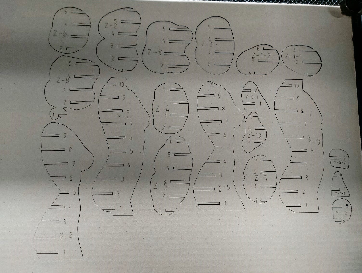 Now, let´s cut. I used 3 mm cardboard to cut my pieces. This is the DXF file to cut. 3