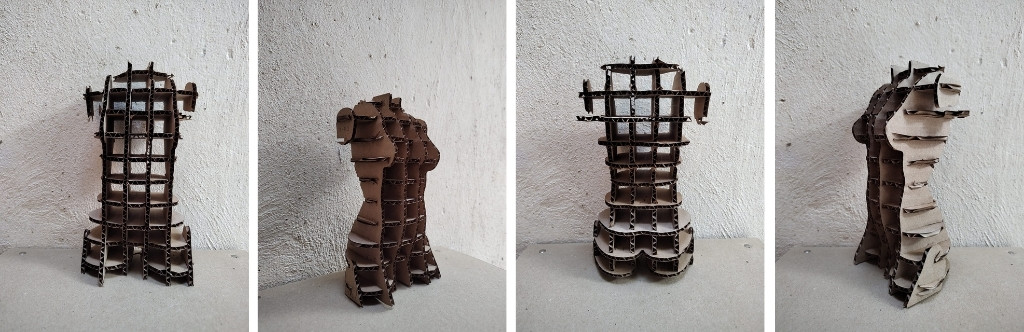 Through digital design and manufacturing, the digitized body becomes a hybrid object: simultaneously biological and technological. The translation of the body into a 3D model allows us to explore new forms of materialization, where the skin can be understood as a structural surface, volume as a constructive system, and the body as a mold adaptable to different manufacturing processes.